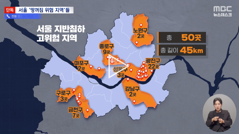 이에 mbc가 서울 씽크홀 위험지역 50곳 정보를 공개하였습니다.