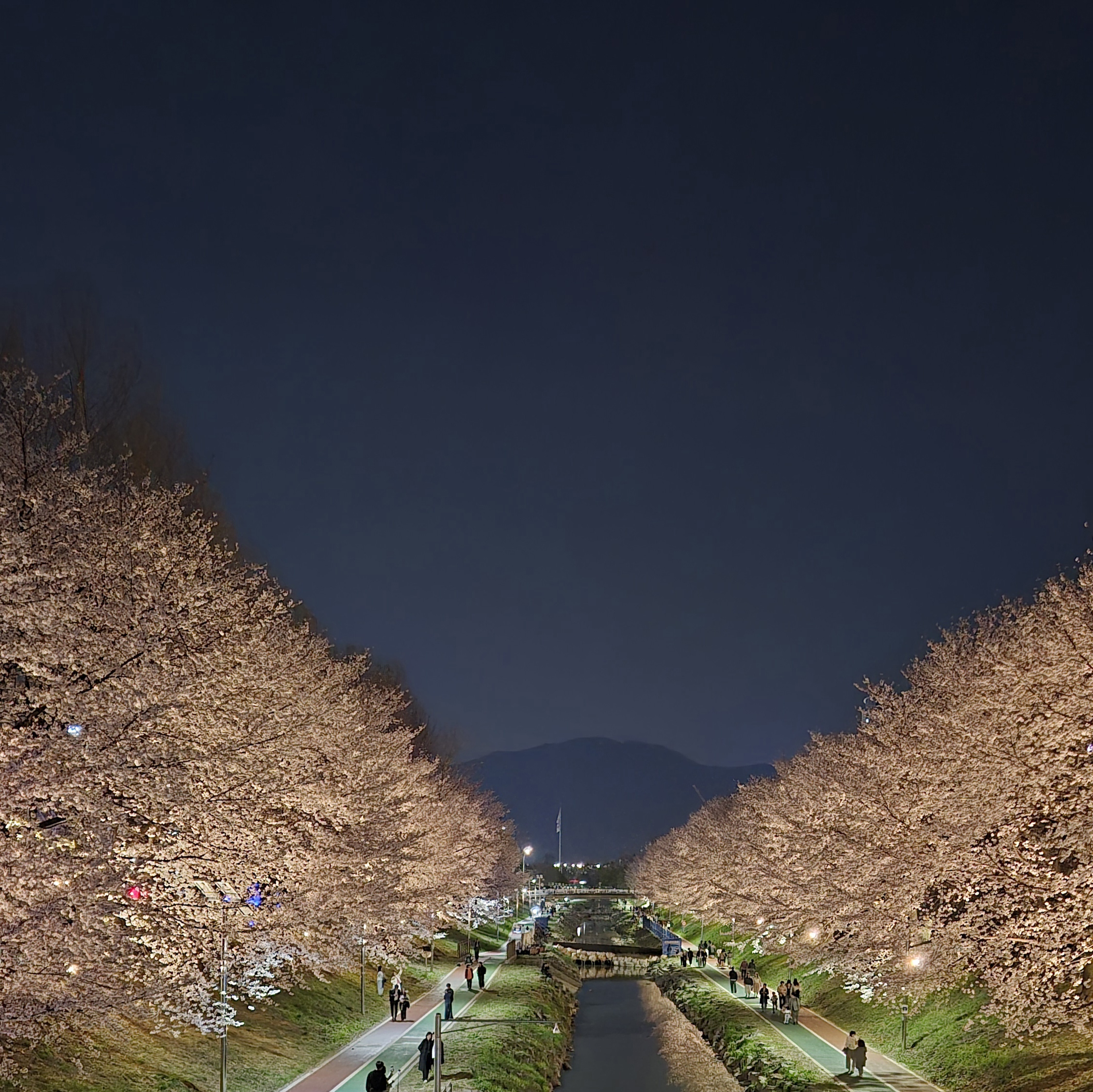 양재천의 벚꽃은 낮에도 충분히 아름답지만, 진정한 매력은 해가 진 뒤부터 시작됩니다. 산책로를 따라 설치된 조명과 가로등 불빛이 활짝 핀 벚꽃나무에 반사되어 환상적인 야경을 만들어주고, 고요하게 흐르는 물 위에 비친 벚꽃 그림자까지 더해지면 그야말로 도심 속에서 만나는 작은 봄의 정원처럼 느껴져요. 낮보다 덜 붐비는 시간대라 한적하게 산책하기 좋고, SNS 인증샷을 남기기에도 최고의 장소입니다. 올해는 “야경 맛집”이라는 별명까지 생겼을 정도니까요.