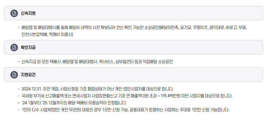 2024년 1월부터 2025년 12월까지 배달 활용 실적이 있는 사업자신청 홈페이지에서 자가진단 가능해요.