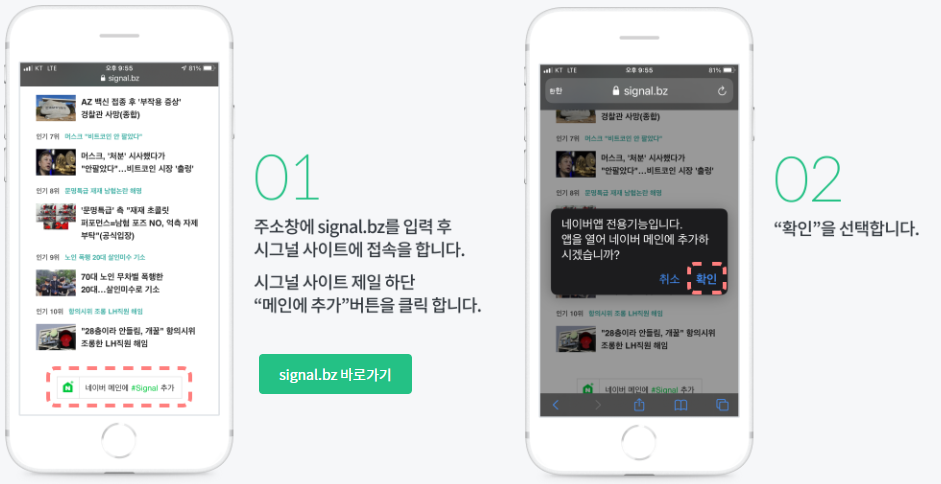 3. '시그널'을 네이버 앱에 추가하는 방법
