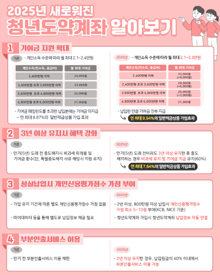 청년도약계좌는 대한민국 청년들의 중장기적인 자산 형성을 지원하기 위해 도입된 정책형 금융상품입니다. 내가 납입한 금액과 이자에 더해, 5년 만기 시 정부의 기여금을 추가로 제공하는 정책금융상품인데, 2025년 4월 현재 최신 정보를 상세히 알아볼게요.