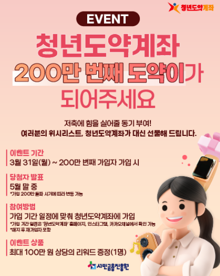 청년도약계좌 200만 번째 도약이가 되면 최대 100만 원 리워드 증정