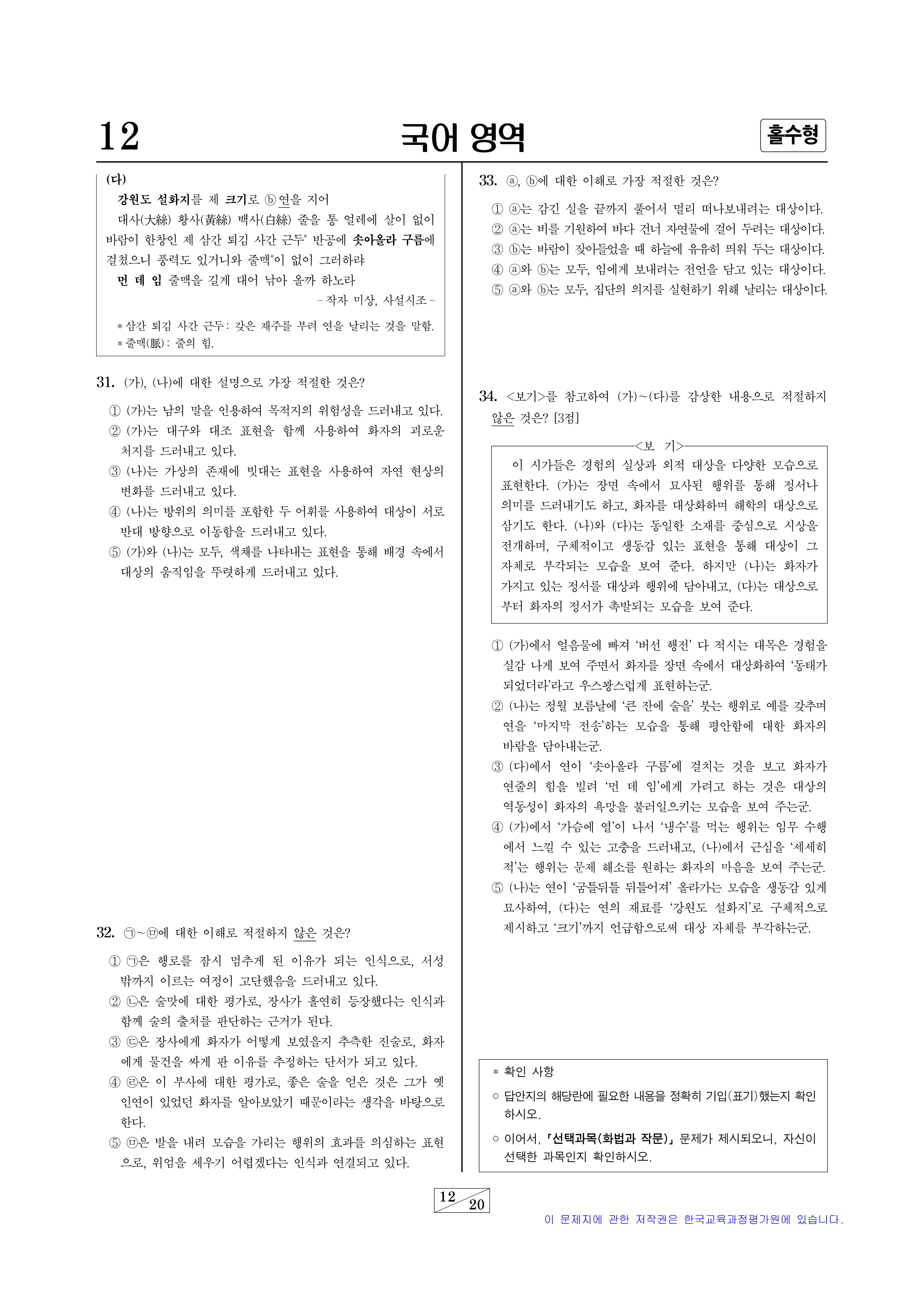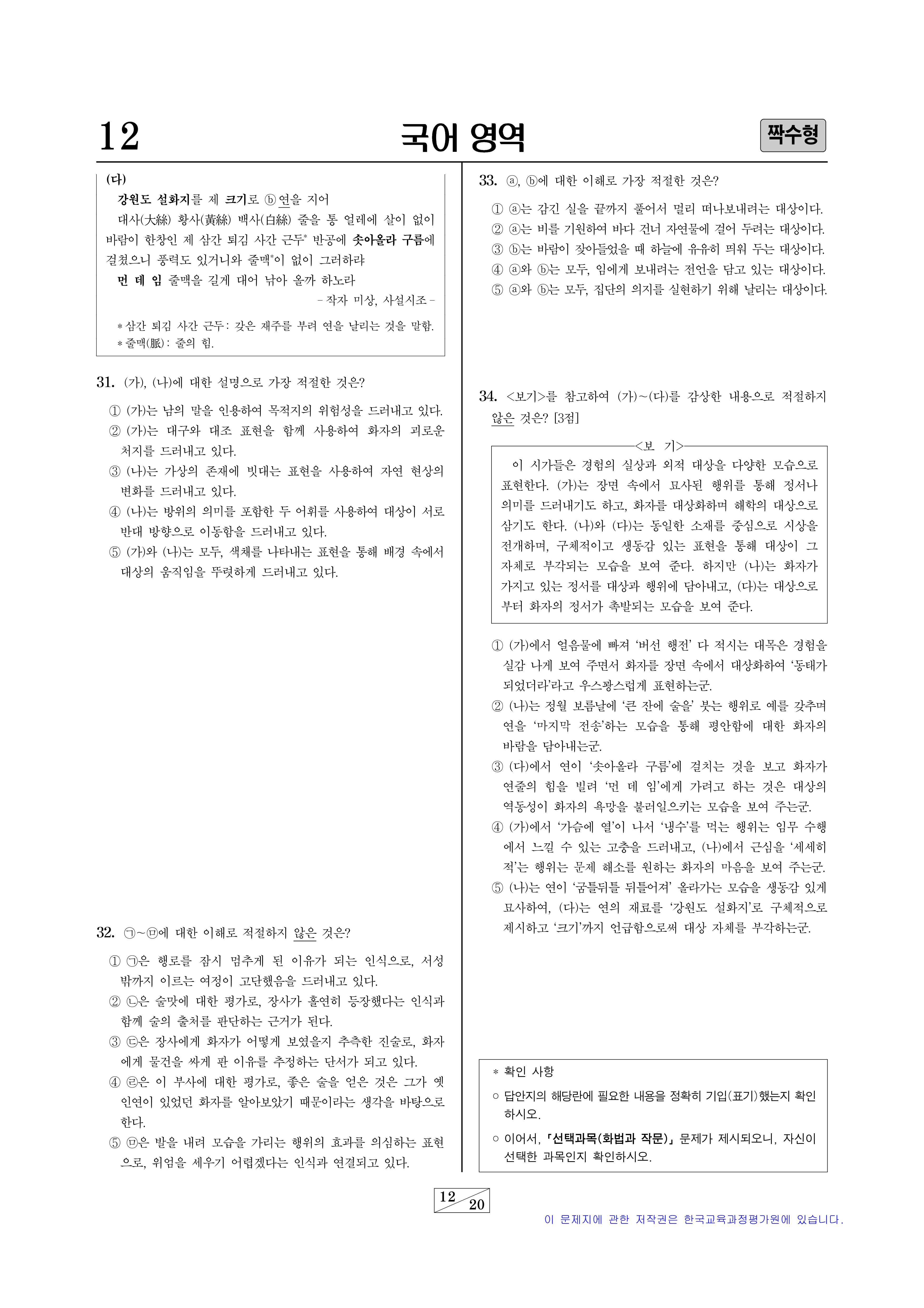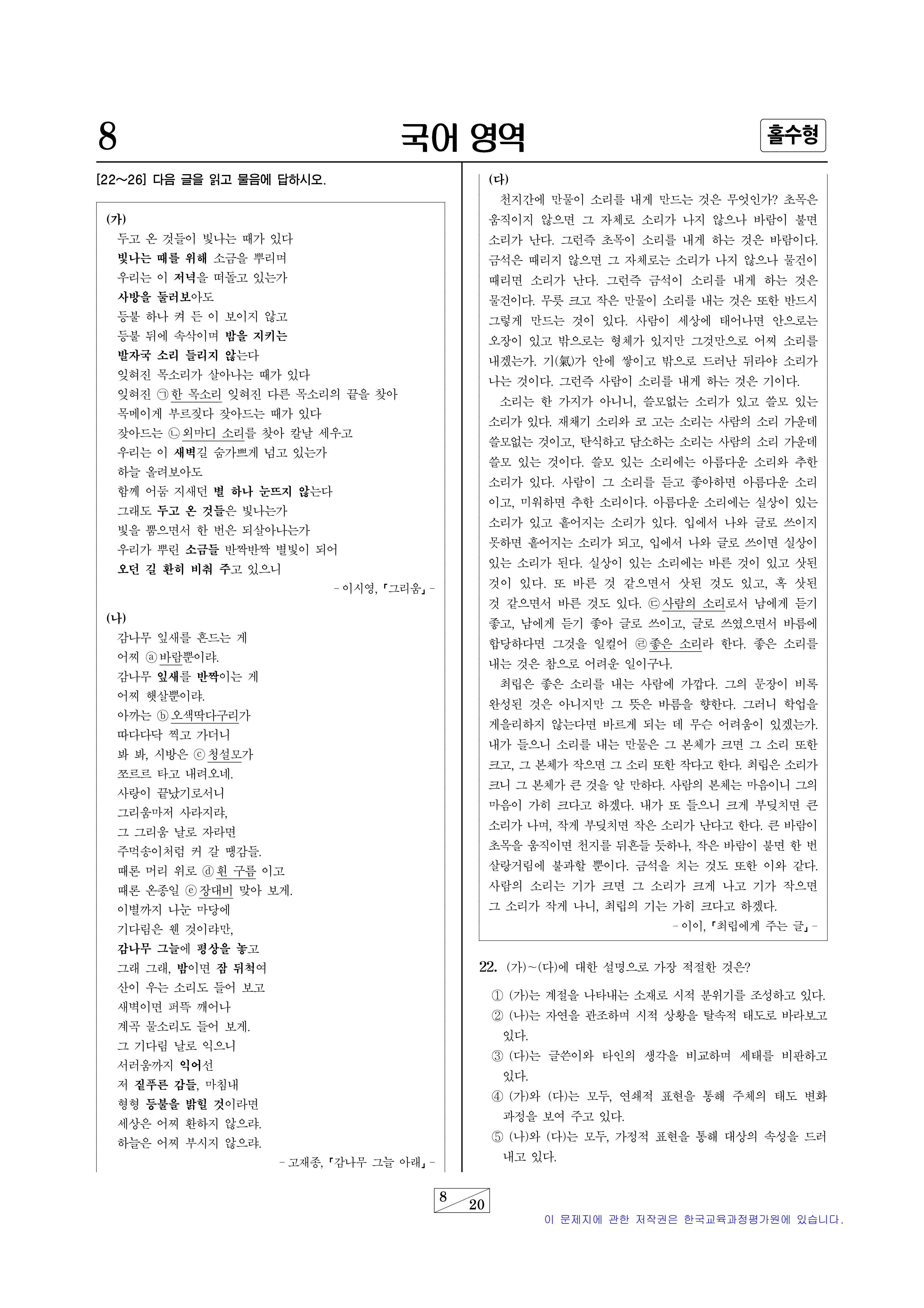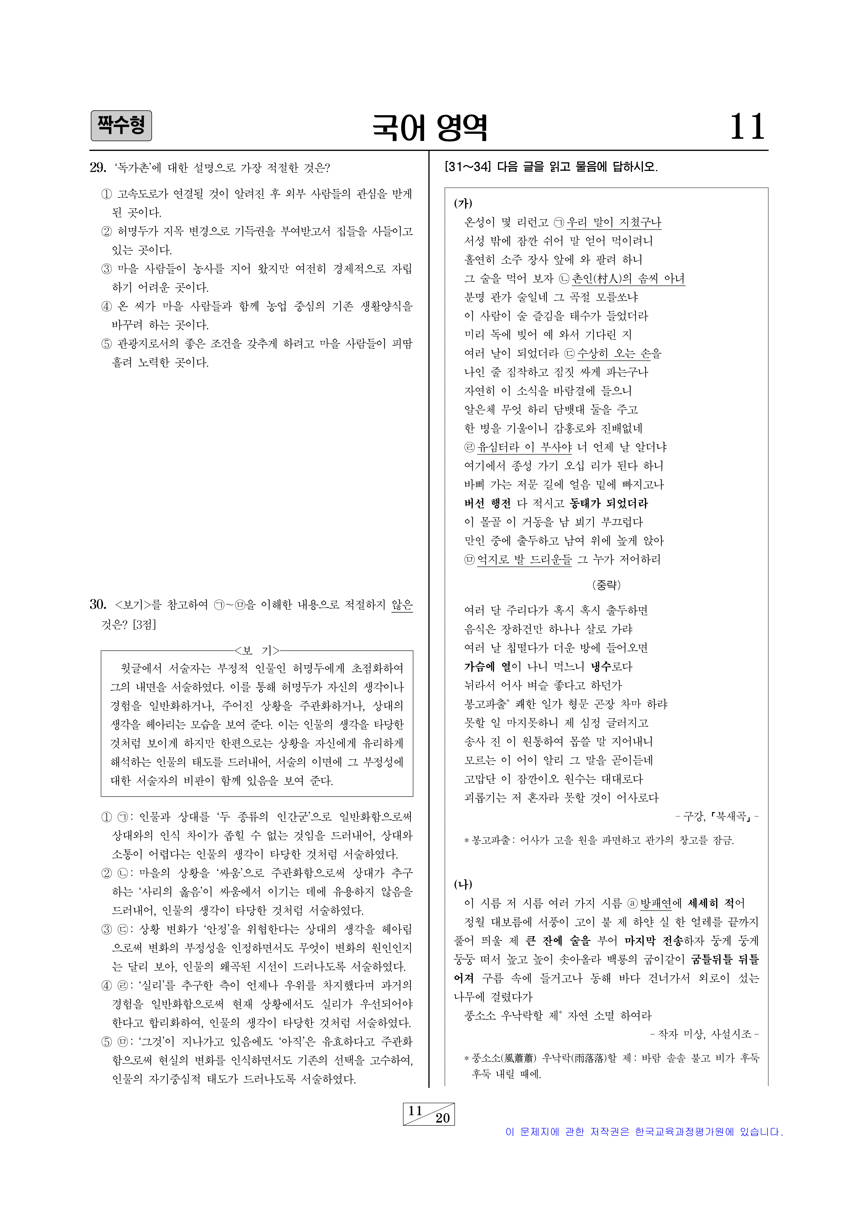 - 문학: 현대시, 고전소설 균형 있게 출제
