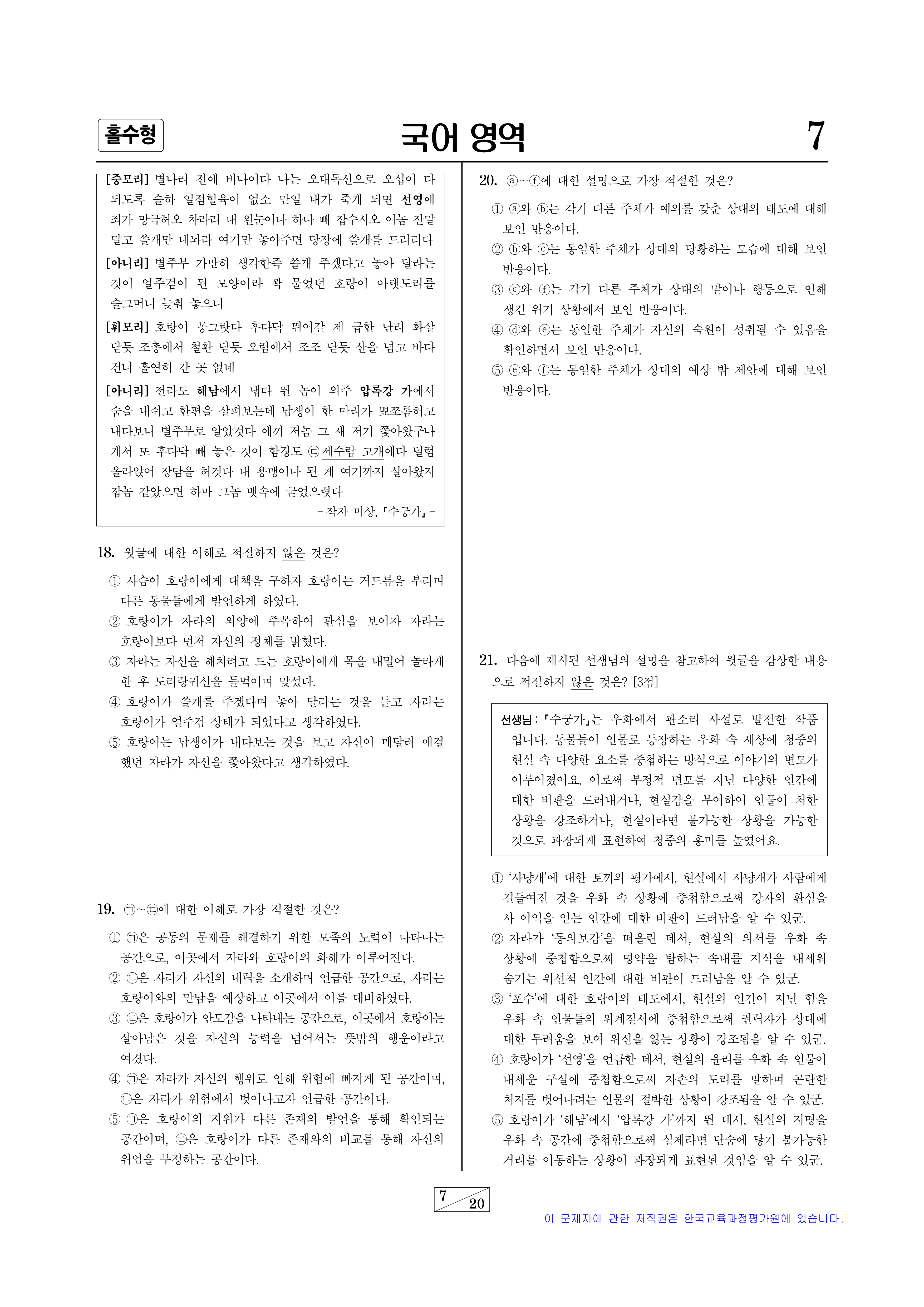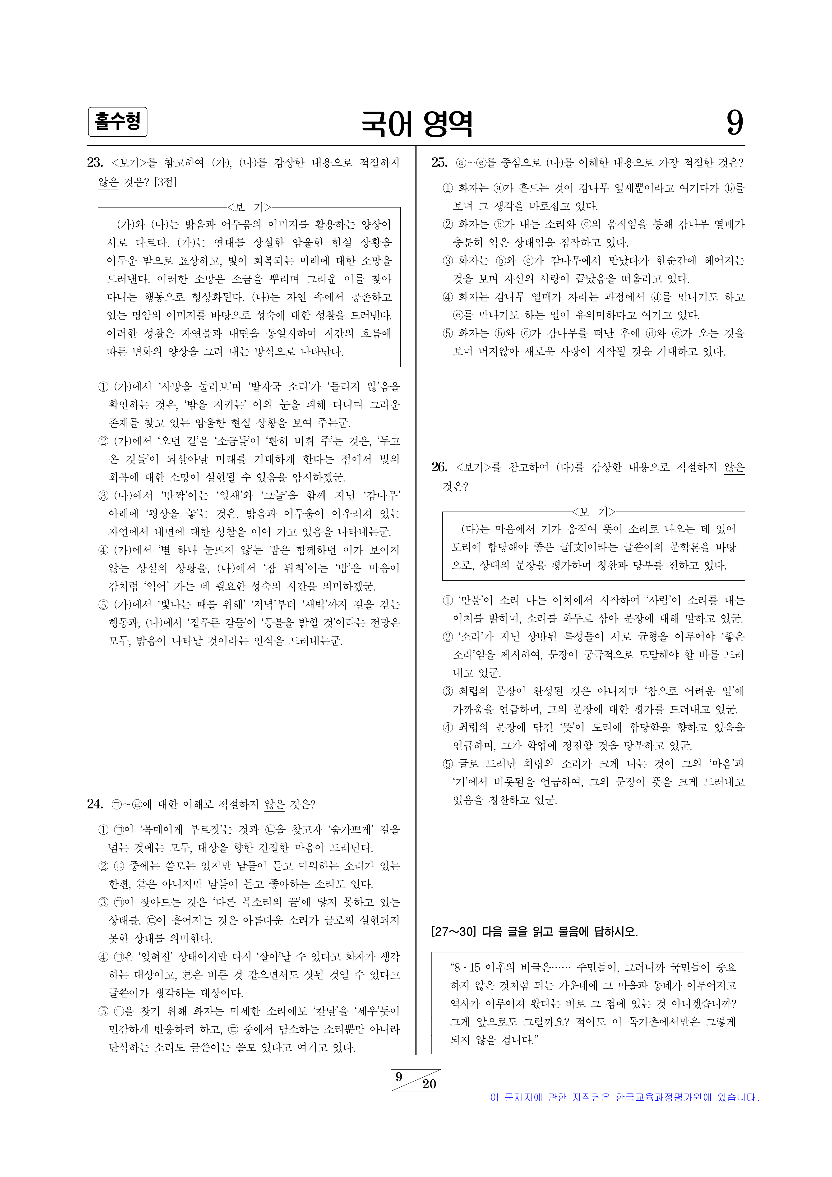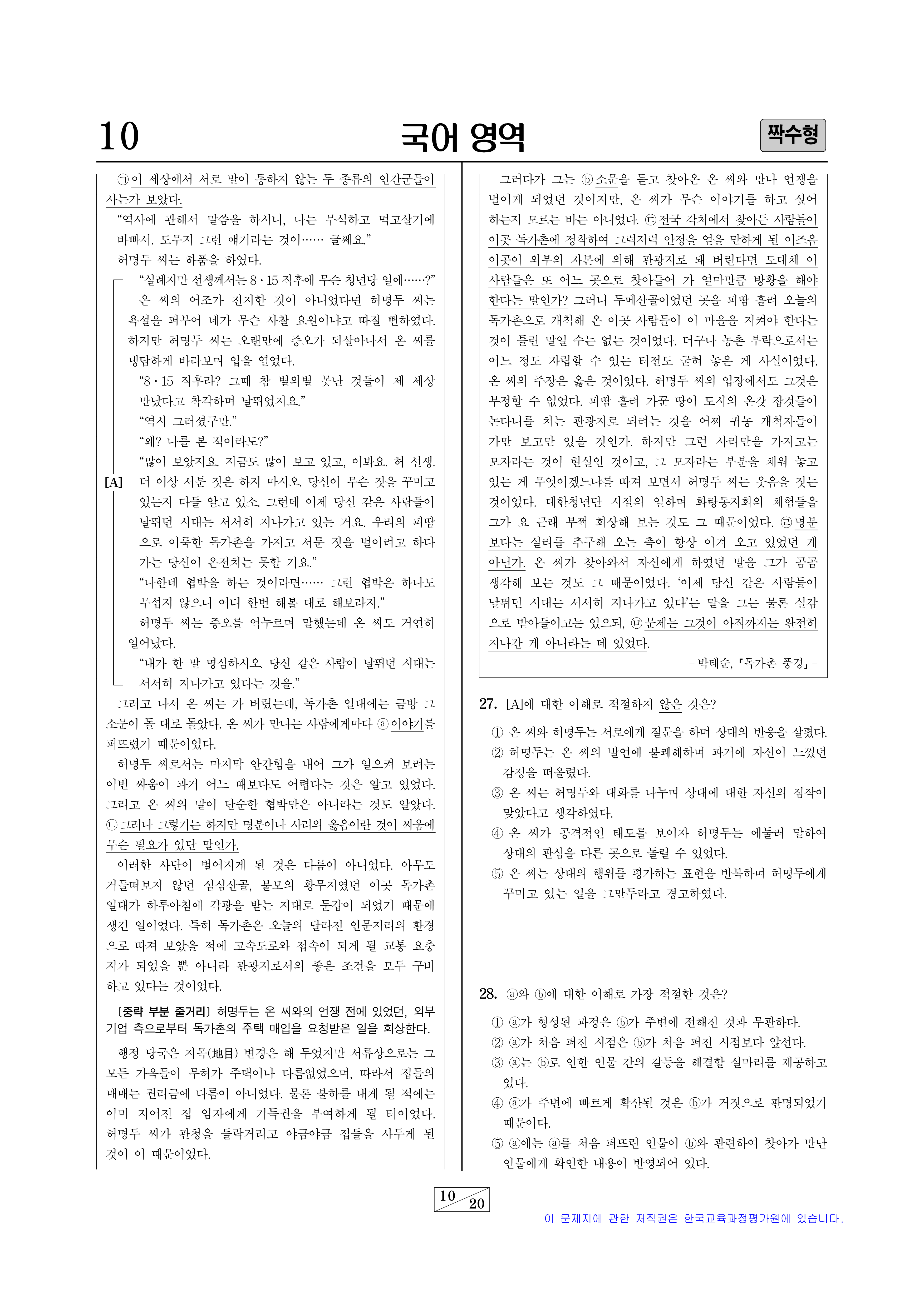 - 문학: 현대시, 고전소설 균형 있게 출제