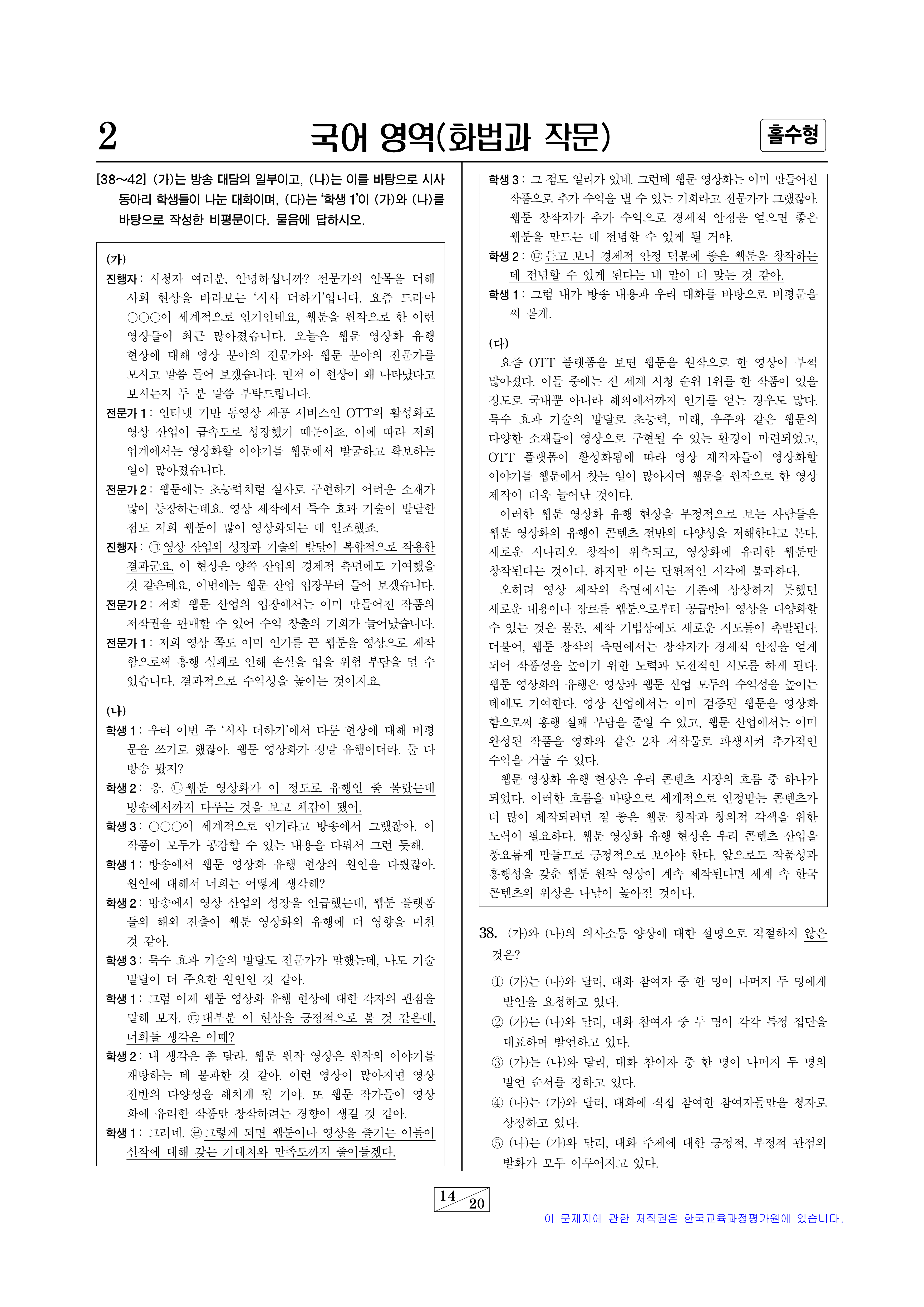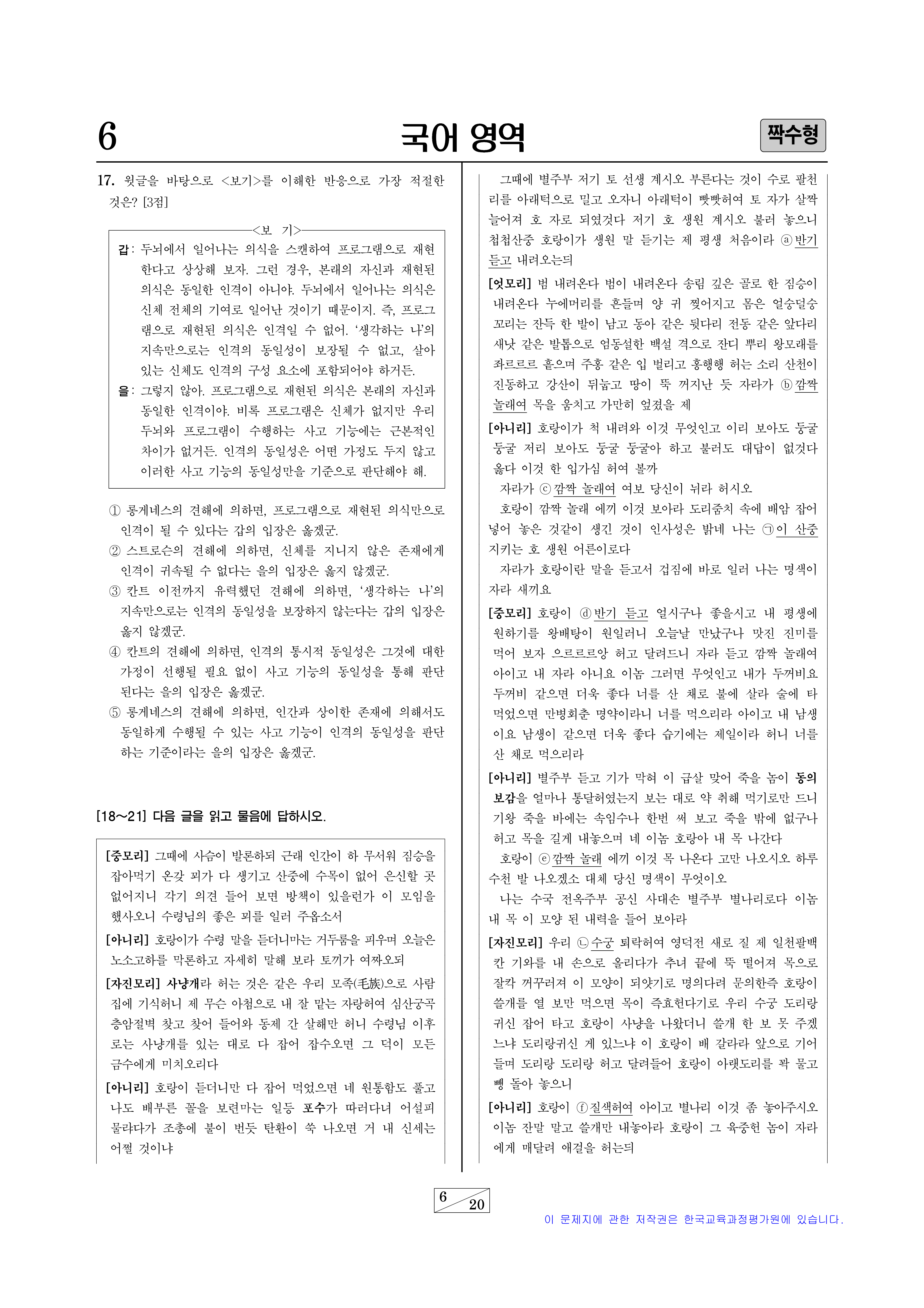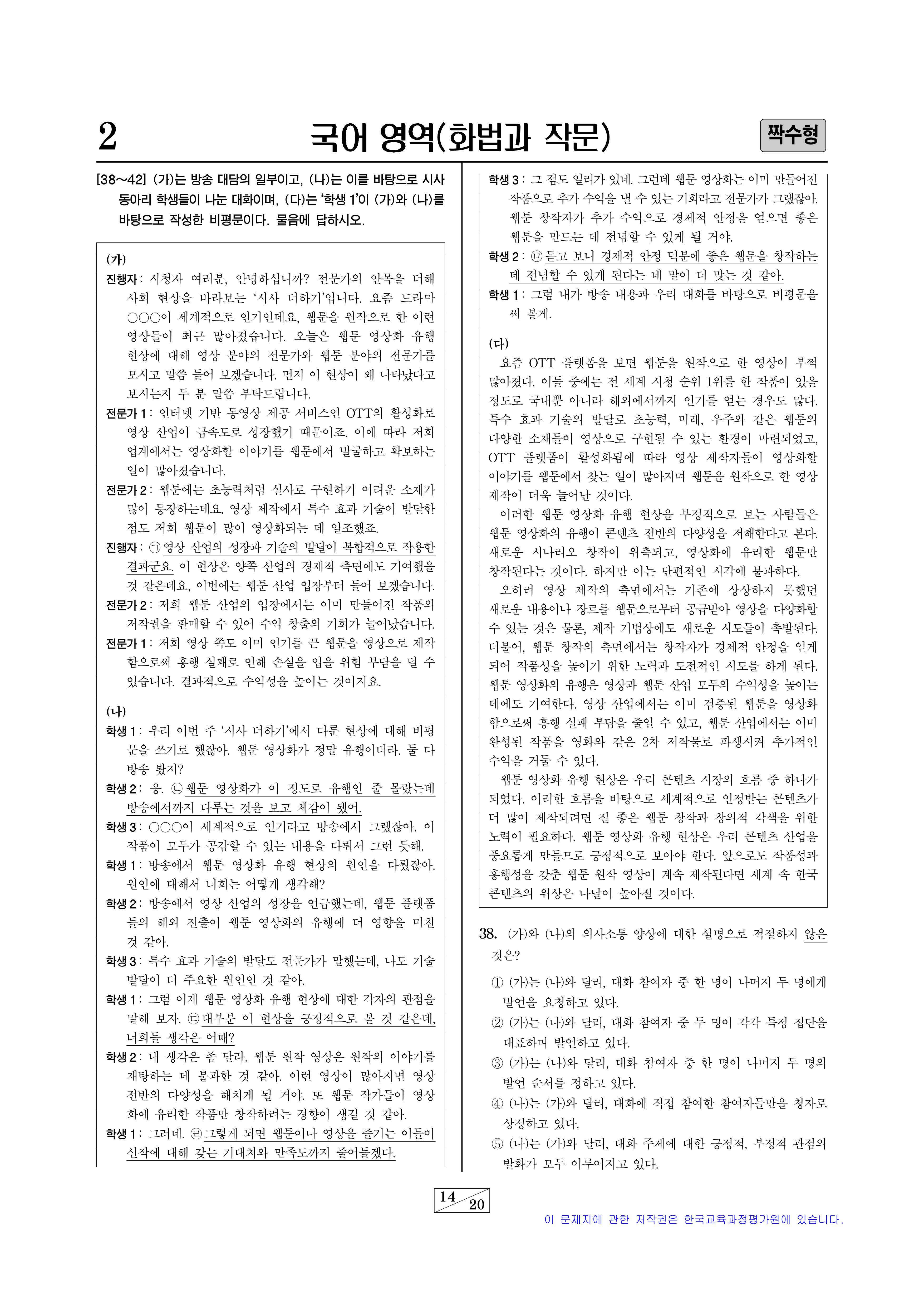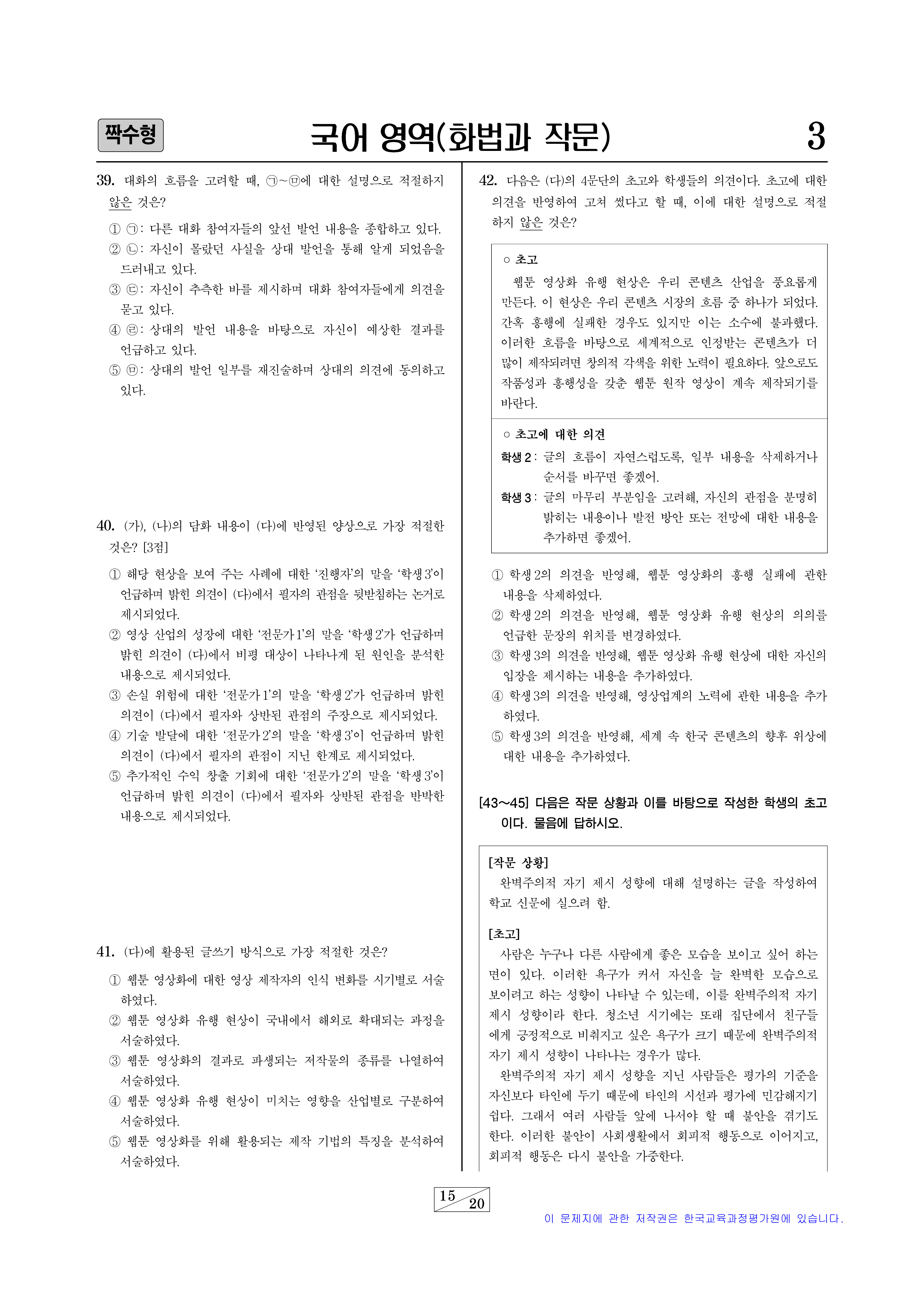 - 문학: 현대시, 고전소설 균형 있게 출제